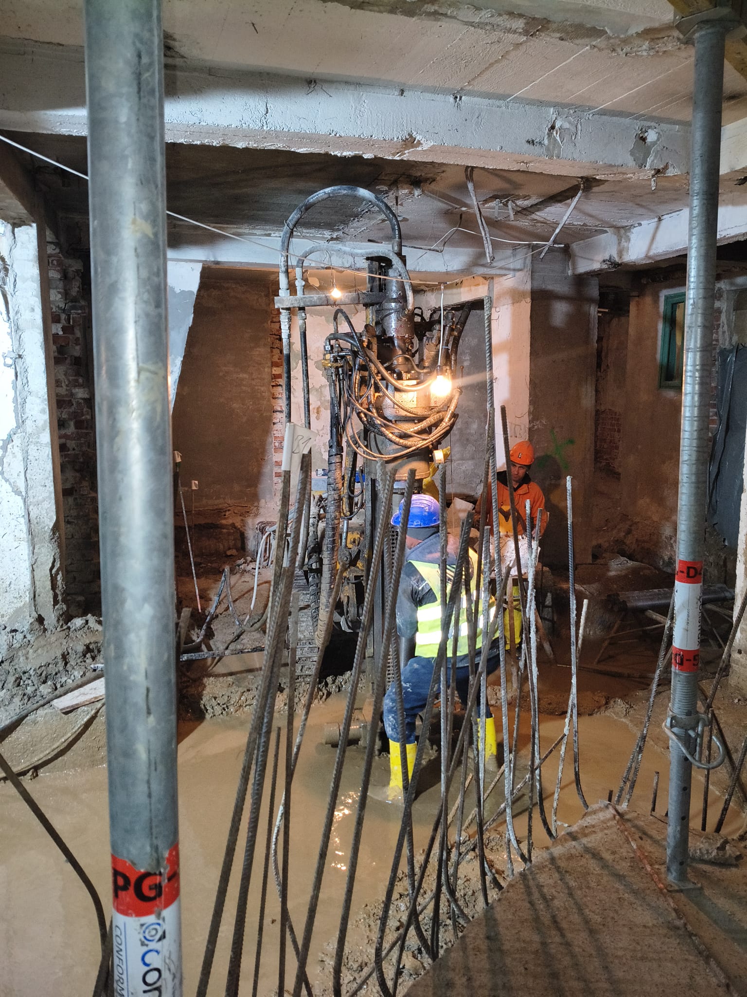 - realizarea unui număr total de 83 de coloane prin tehnologia jet grouting, dispuse sub amprenta fundațiilor și în zonele intermediare;